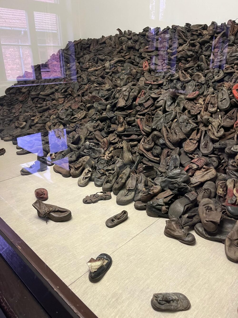 Wer nicht sofort ermordet wurde, erhielt eine tätowierte Nummer. Stefania trug die 89136 – am Oberschenkel, weil ihr Arm als Säugling zu klein war. Während wir das Lager wieder verließen, war dieser Ort für anderthalb Millionen Jüdinnen und Juden Endstation. In der sogenannten Sauna blickten uns ihre Familienfotos an – glückliche Gesichter, deren Zukunft einfach ausgelöscht wurde.