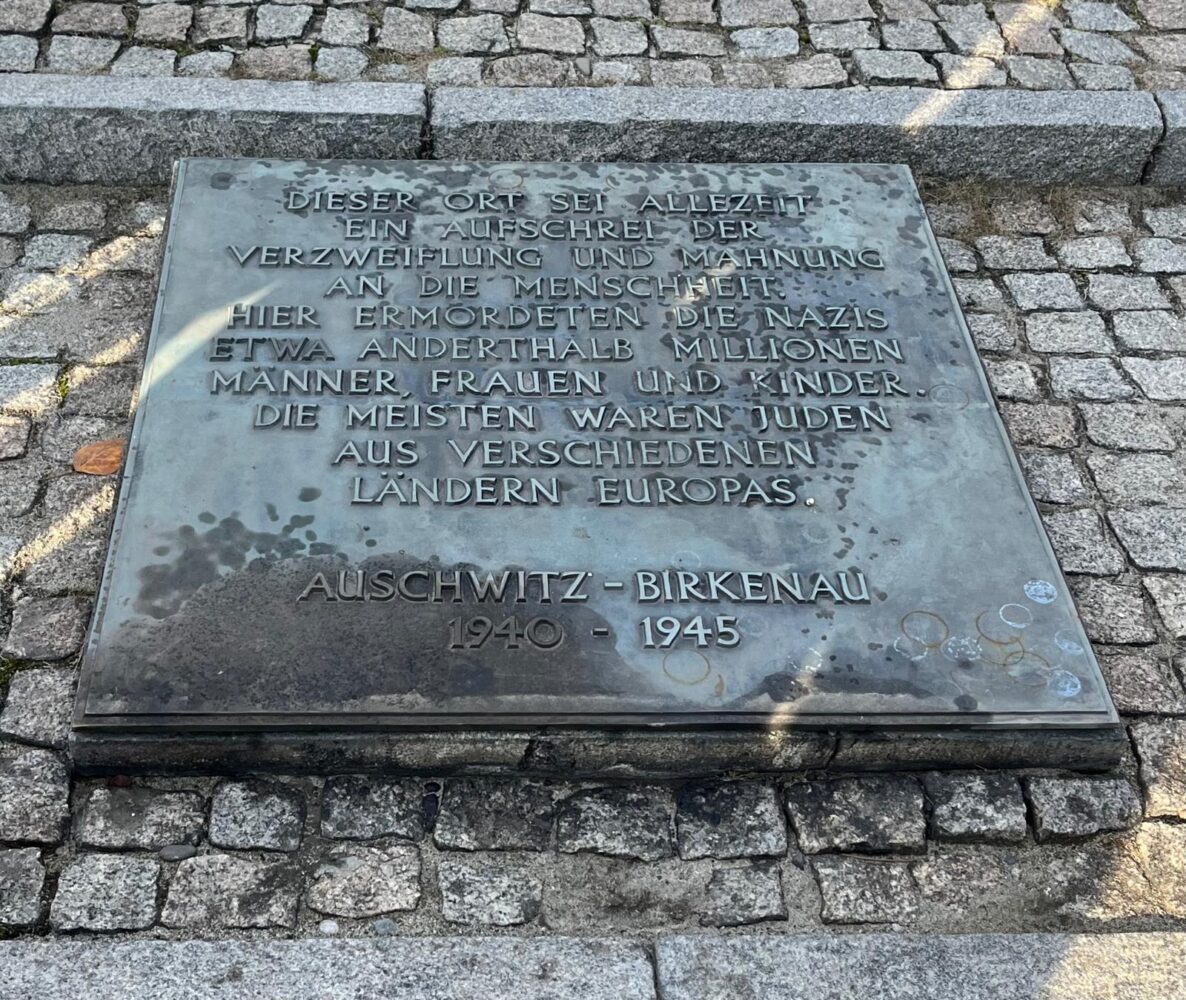 Das erste Mal vor dem Tor mit der zynischen Aufschrift „Arbeit macht frei“ zu stehen, ließ uns sprachlos werden. Dieses Tor, was wir bis dato nur aus Lehrbüchern kannten, schrie uns die Ungerechhgkeiten förmlich entgegen. In fast 30 Baracken sind verschiedene Ausstellungen zu sehen. Neben den Schlaf- und Sanitärbaracken, wurden wir durch die Todesbaracke vorbei an der Erschießungswand geführt. Wir sahen Haare, Schuhe, Koffer, Brillen. Bilder der Inhaftierten blickten uns entgegen – ängstlich, leer, verloren. In der jüdischen Ausstellung konnten wir zudem eine riesige Buchwand sehen, in dem alle jüdischen Opfer des Nahonalsozialismus eingeschrieben waren. Es hatte 16084 Seiten. Viele fanden dort auch ihren eigenen Familiennamen wieder. Besonders berührend war ein schlichter Raum mit Kinderzeichnungen aus den Lagern und Luftschutzkellern: Szenen von Umarmungen, Flucht, Bomben und Tod.