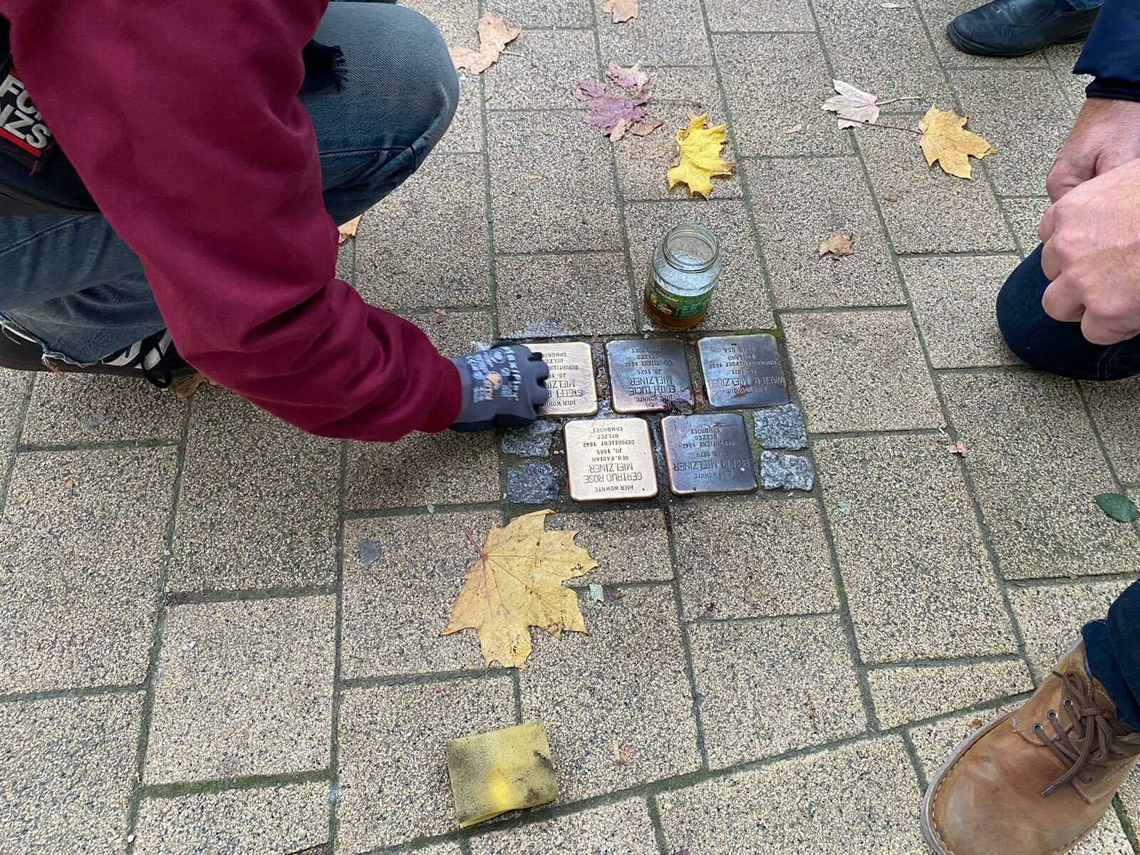 Warum treffen wir uns gerade heute am 09. November zum Stolperstein – Putzen? Dieser Tag, auch deutscher Schicksalstag genannt, ist ein Tag mit positiven und negativen Einträgen in die deutschen Geschichtsbücher. Viele werden hier an den Fall der Berliner Mauer denken. Leider steht dieser Tag aber auch für die furchtbaren Seiten der deutschen Geschichte. So zum Beispiel der 9.11.1923 – Hitlerputsch – oder der 09.11.1938 – Reichspogromnacht, welche den Anfang des offenen Terrors gegenüber Juden in Deutschland darstellte.